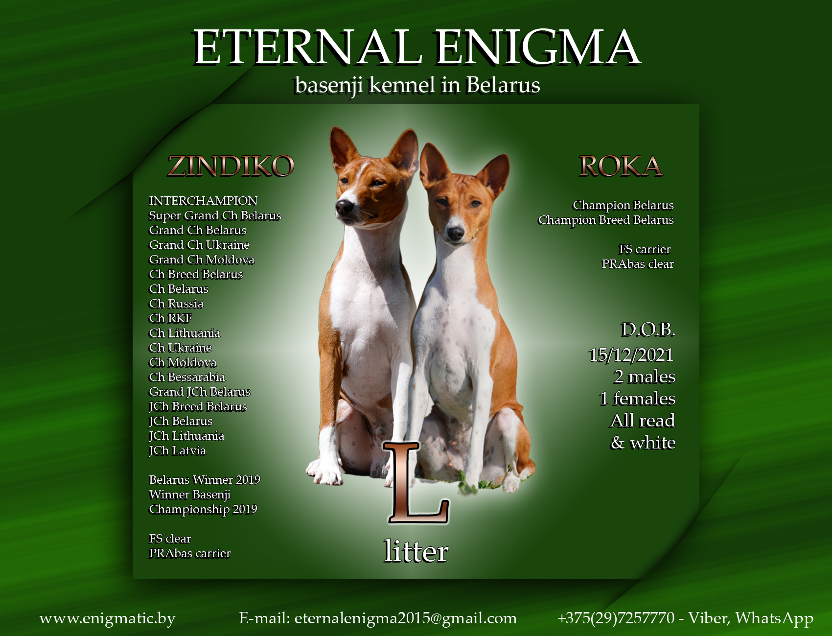 д.р. 03.12.2020 2 суки тигрового окраса 1 сука рыже-белого окраса 1 кобель рыже-белого окраса